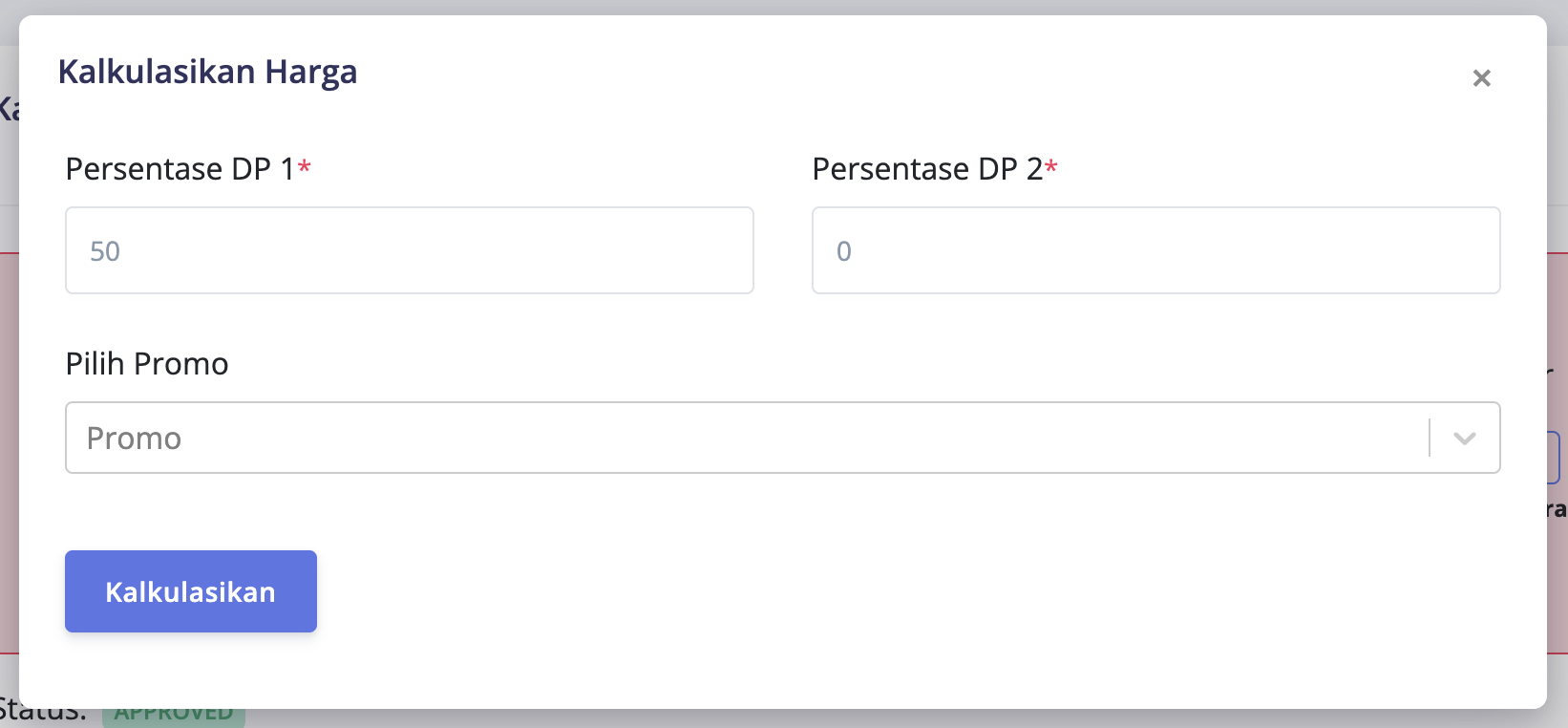- Approved: Artinya hasil kalkulasi harga sudah disetujui oleh GM/Finance.